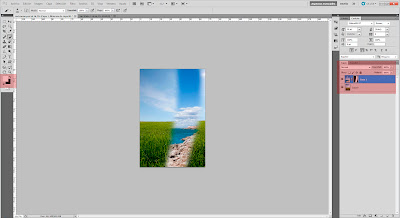 Bueno ahora que tenemos las 2 imagenes y la del "cielo" esta arriba de la del "césped" es cuando tenemos que hacer visibles las partes que queremos.